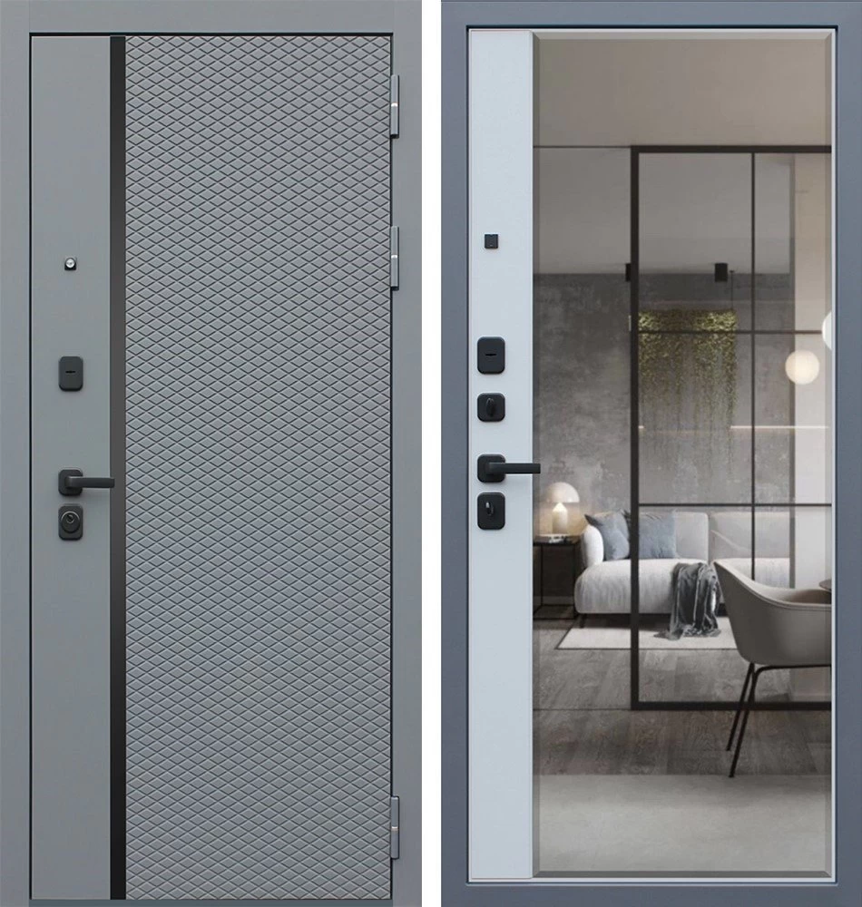 Дизайнерская входная Дверь Манчестер с зеркалом класса Люкс с несколькими листами стали, звукоизоляцией и теплоизоляцией. Утепленный короб и полотно защитят от сквозняков и шумов. Модель не только надежная, комфортная, защищенная и высочайшего качества, но и очень красивая! Будет отлично сочетаться с интерьером дома, квартиры или офиса. Сейчас действует выгодное предложение по цене: 56 933 руб.