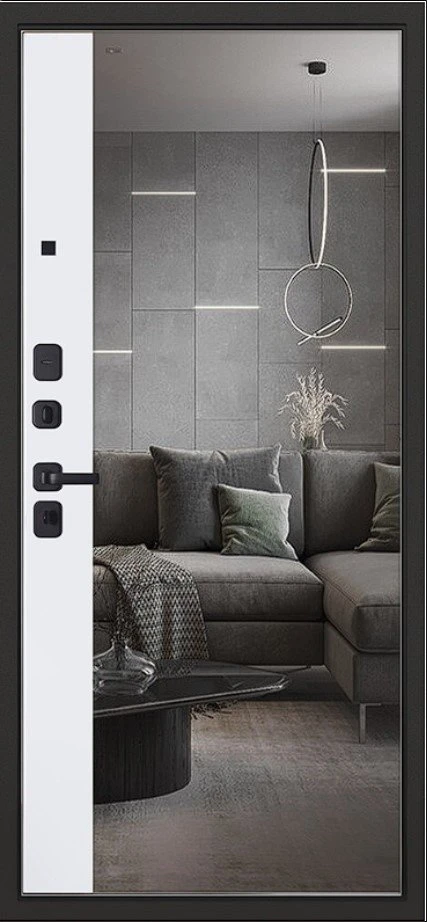 Надежная входная Дверь Scandi с зеркалом премиум класса по цене 45 083 руб. Большая толщина стали защитит от проникновения в ваш дом, квартиру или коттедж. Используется очень качественная фурнитура: замки, цилиндры, ручки, защелки. Покрытие и отделка двери изготовлено под внимательным контролем производителя. Дверь имеет долгий срок службы и гарантию.