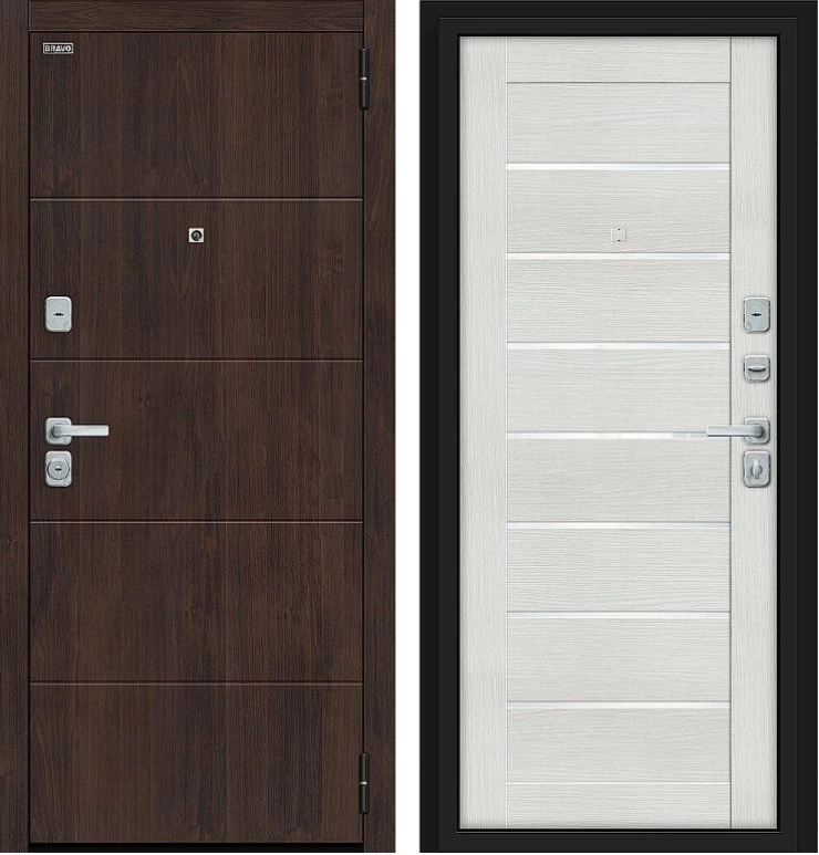 Надежная входная Дверь Браво Прайм/BChrome Almon/Bianco Melinga премиум класса по цене 39 783 руб. Большая толщина стали защитит от проникновения в ваш дом, квартиру или коттедж. Используется очень качественная фурнитура: замки, цилиндры, ручки, защелки. Покрытие и отделка двери изготовлено под внимательным контролем производителя. Дверь имеет долгий срок службы и гарантию.