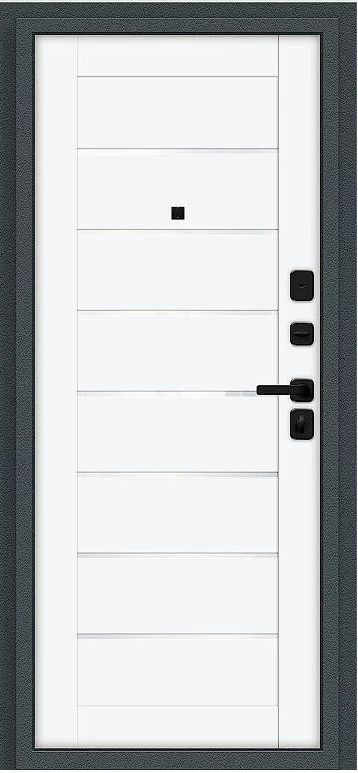 Надежная входная Дверь Браво Техно/SBlack Старк антрацит/White Silk премиум класса по цене 35 933 руб. Большая толщина стали защитит от проникновения в ваш дом, квартиру или коттедж. Используется очень качественная фурнитура: замки, цилиндры, ручки, защелки. Покрытие и отделка двери изготовлено под внимательным контролем производителя. Дверь имеет долгий срок службы и гарантию.